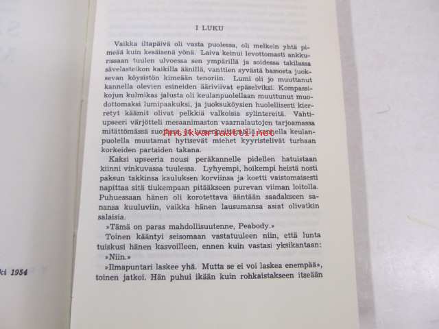 | Saatavilla | 1 kpl | | Julkaisuvuosi | 1954 | | Sivuja | 284 | | Painos | 4 | | Kunto | K3 | | Sidonta/painoasu | Nidottu (pehmeäk.) | | Kielet | Suomi |