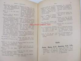 | Saatavilla | 1 kpl | | Julkaisuvuosi | 1924 | | Sivuja | 498 | | Painos | 1. | | Kunto | K3 | | Sidonta/painoasu | Sidottu (kovak.) | | Kielet | Suomi, Ruotsi |