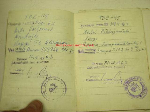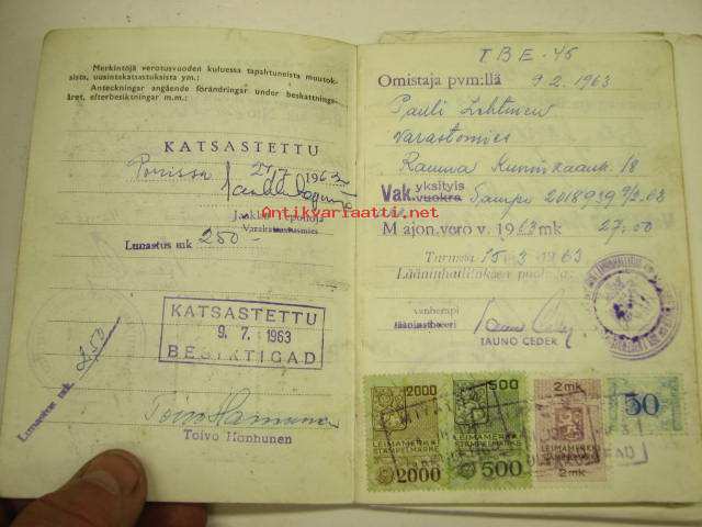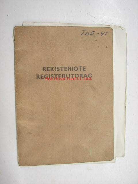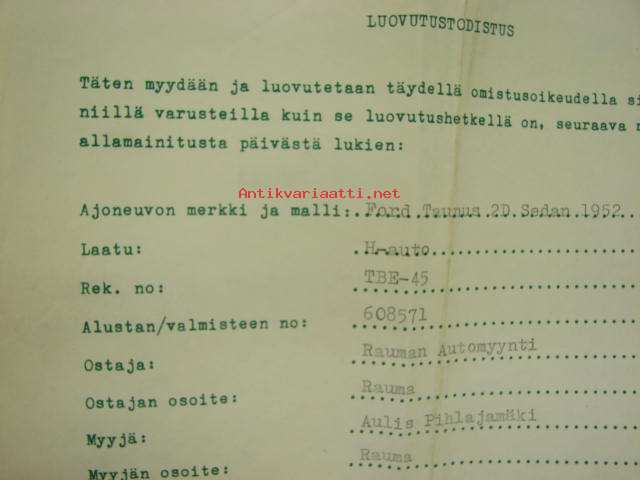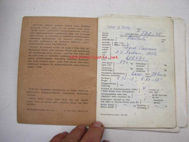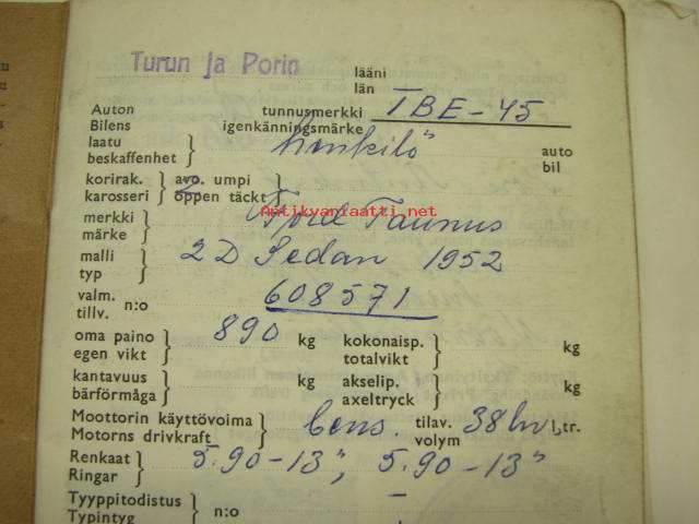 Ford Taunus 2D Sedan 1952, rekisterinro TBE-45, Kalevi Seppä, Noormarkku -rekisteriote