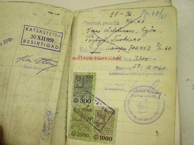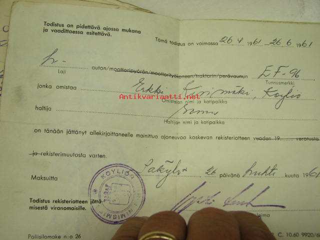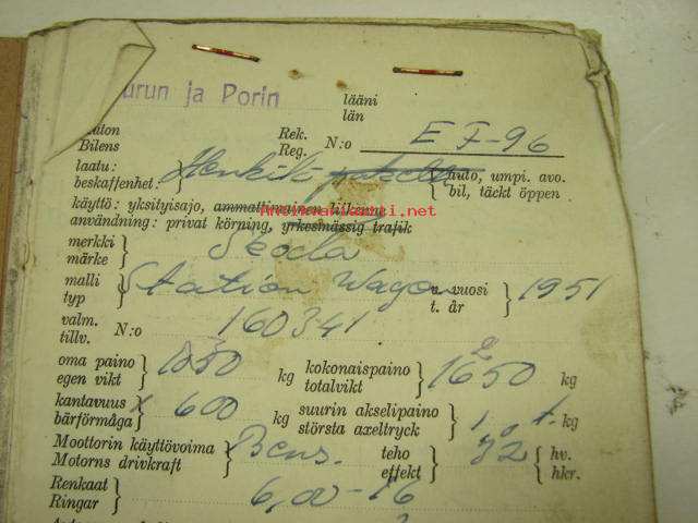 Skoda Station Wagon 1951, rekisterinro EF-96, vääpeli Martti Aaltonen, Turku -rekisteriote