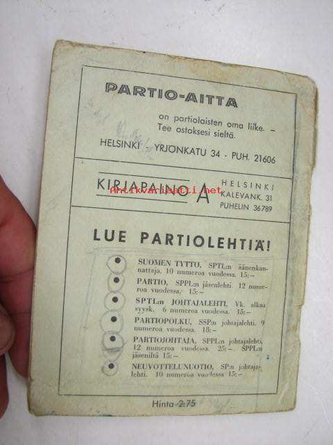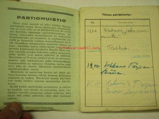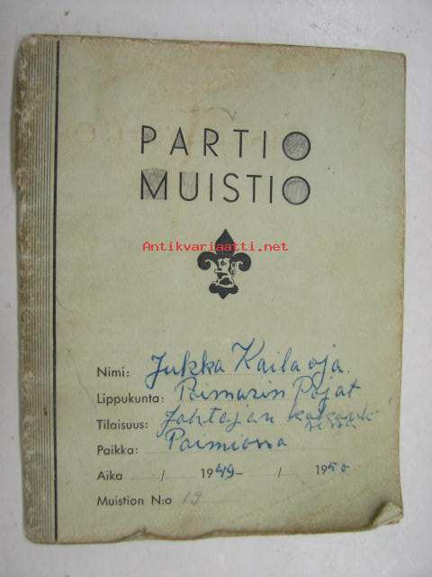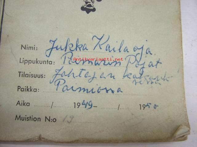 Partiomuistio Jukka Heikki Kailaoja, Ylä-Vista, Paimio, 1949