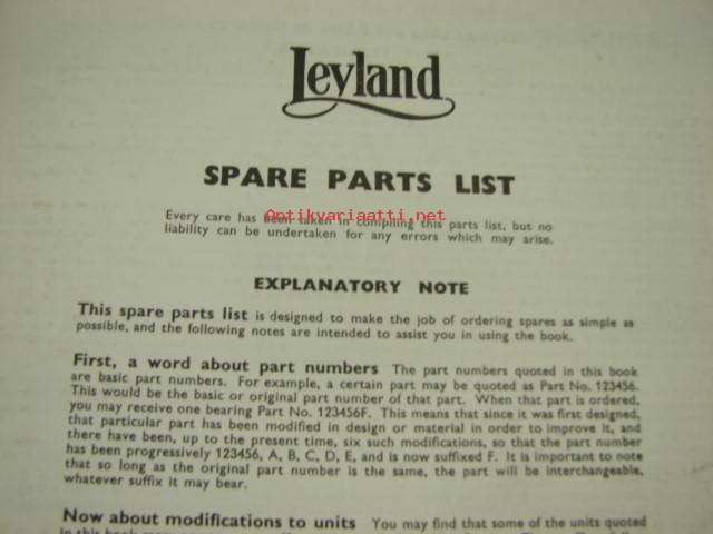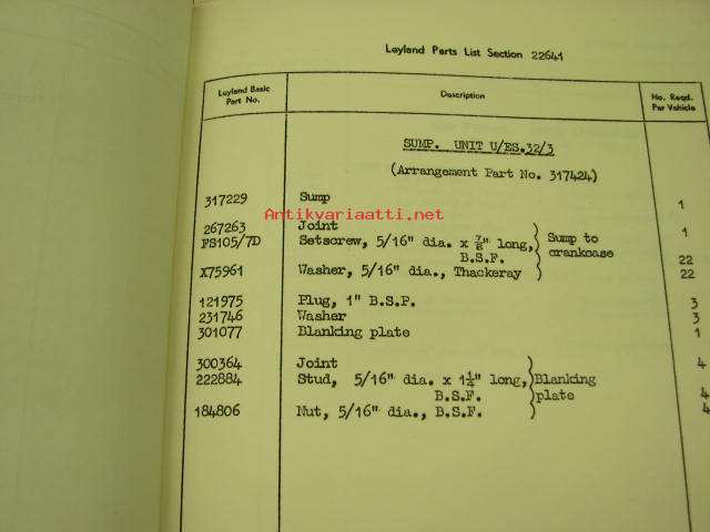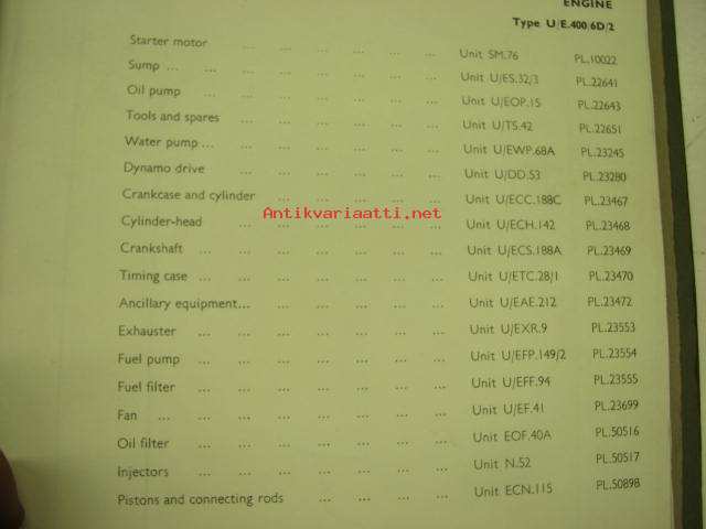 Leyland UE.400/60/2 Diesel engine 305/4 Spare parts list -varaosaluettelo englanniksi