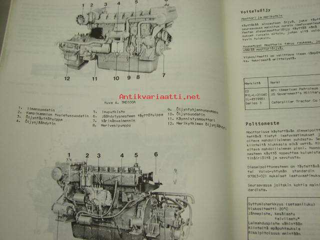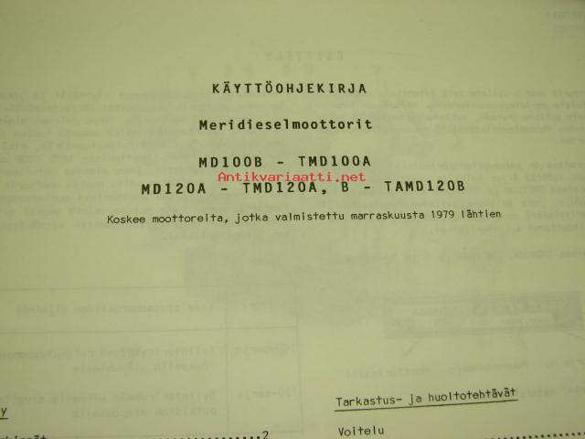 Volvo Penta MD100B, TMD100A, TMD120A, TAMD120B Meridieselmoottorit -korjaamokäsikirja