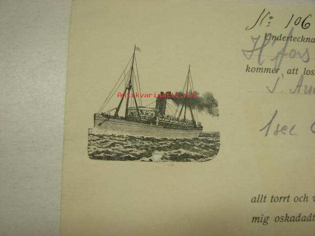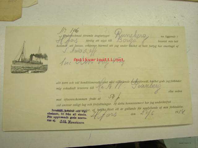 Höyrylaiva J.L. Runeberg / J. Auladieff? 23.6.1914 -konossomentti / laivarahtikirja "lök"