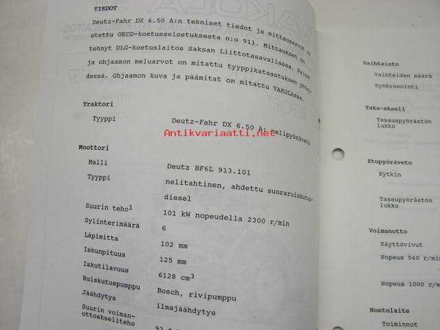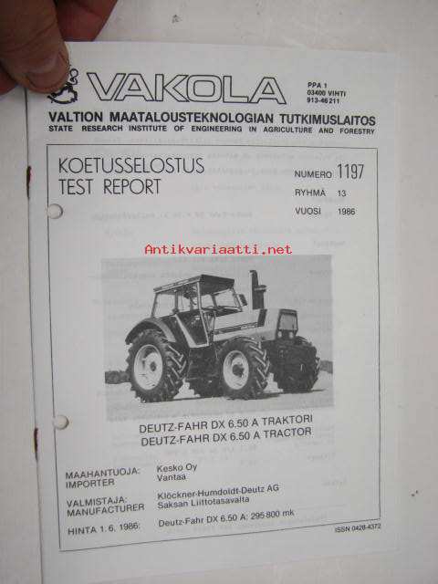 Deutz-Fahr DX 6.50 A Vakola koetusselostus 1197 1986