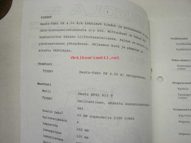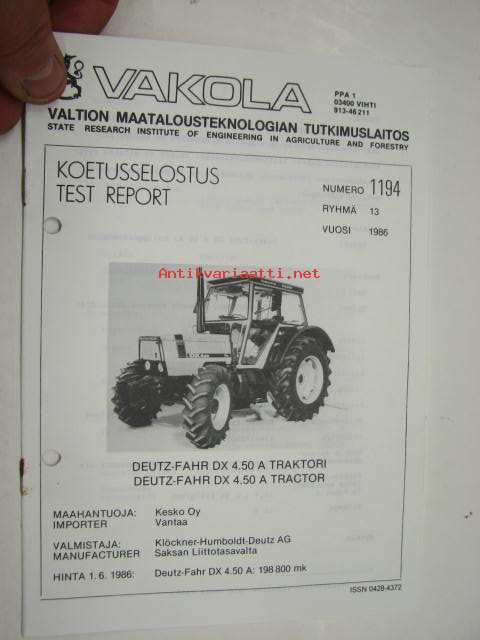 Deutz-Fahr DX 4.50 A Vakola koetusselostus 1194 1986