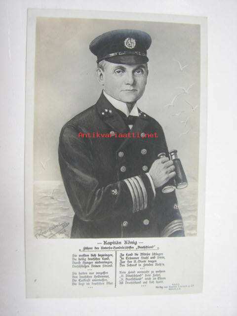 Kapitän König Führer des Untersee-Frachtschiffes "Deutschland" -saksalaisen vedenalaisen rahtisukellusveneen päällikkö -saksalainen postikorttivalokuva I
