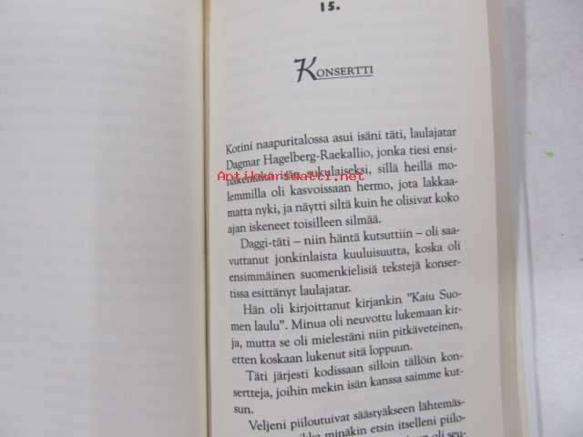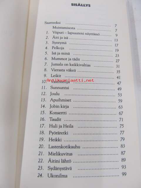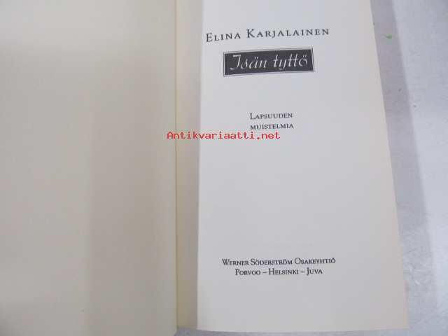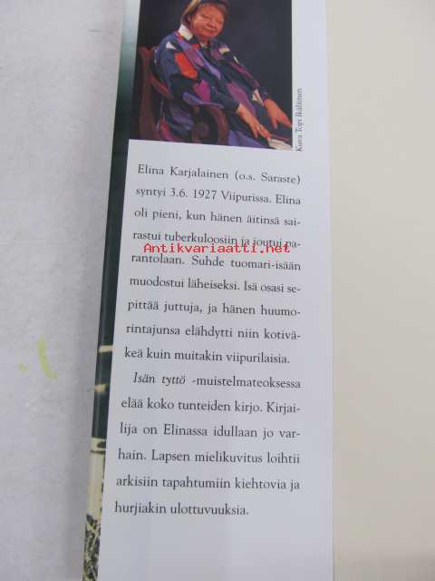 | Saatavilla | 1 kpl | | Julkaisuvuosi | 1999 | | Sivuja | 193 | | Painos | 1. | | Kunto | K3 | | Sidonta/painoasu | Sidottu (kansipaperit) | | ISBN | 951-0-23763-9 | | Kielet | Suomi |