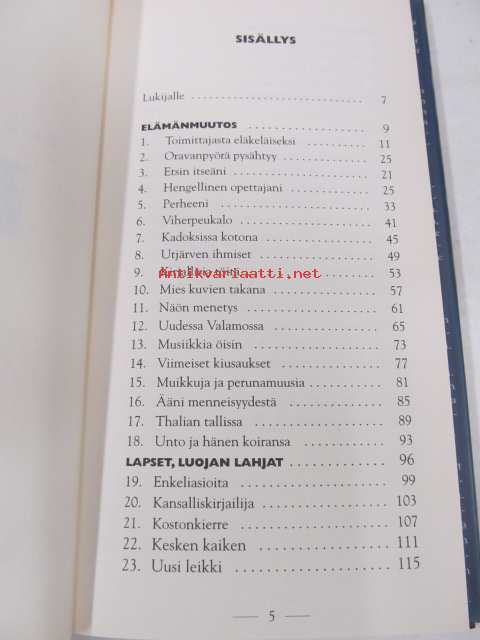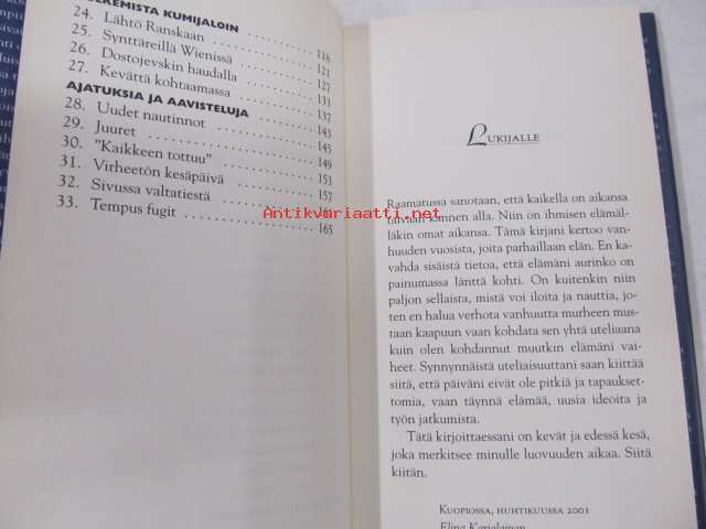 | Saatavilla | 1 kpl | | Julkaisuvuosi | 2001 | | Sivuja | 168 | | Painos | 1 | | Kunto | K3 | | Sidonta/painoasu | Sidottu (kansipaperit) | | ISBN | 951-0-26150-5 | | Kielet | Suomi |