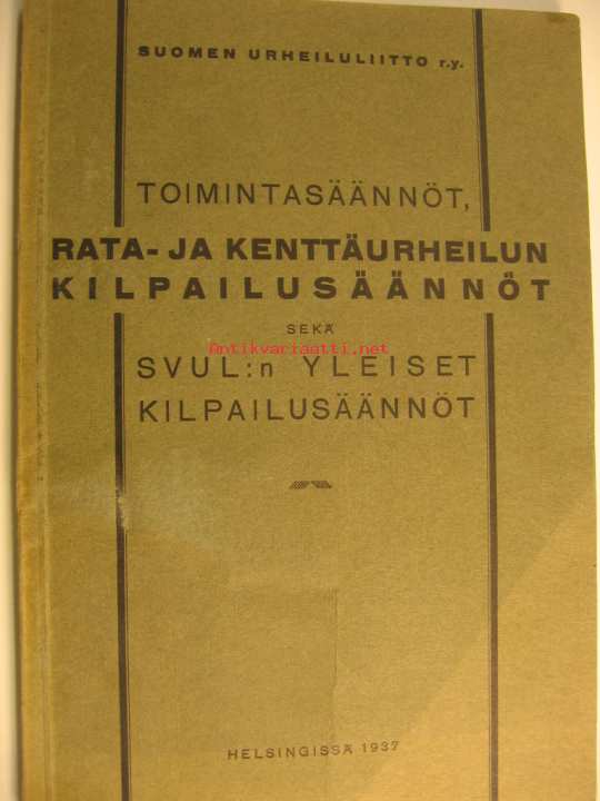 | Saatavilla | 1 kpl | | Julkaisuvuosi | 1937 | | Sivuja | 128 | | Kunto | K3 | | Sidonta/painoasu | Nidottu (pehmeäk.) | | Kielet | Suomi |