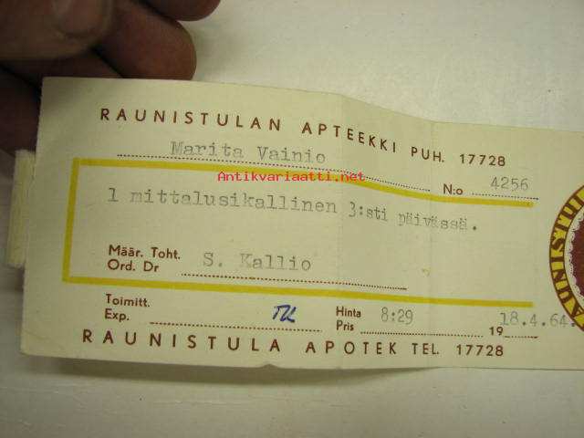 Raunistulan Apteekki Turku, 18.4.1964 -apteekkisignatuuri