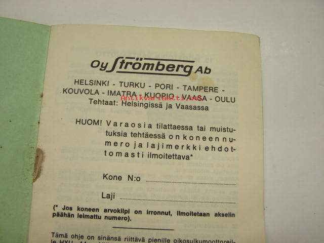 Oy Strömberg Ab, 19??10 x 15 cm kirja.