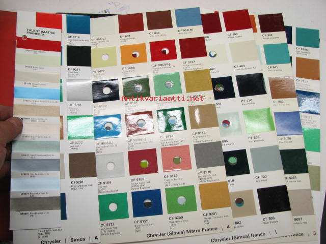 Chrysler Simca / Talbot / Matra -automaalien värimallit