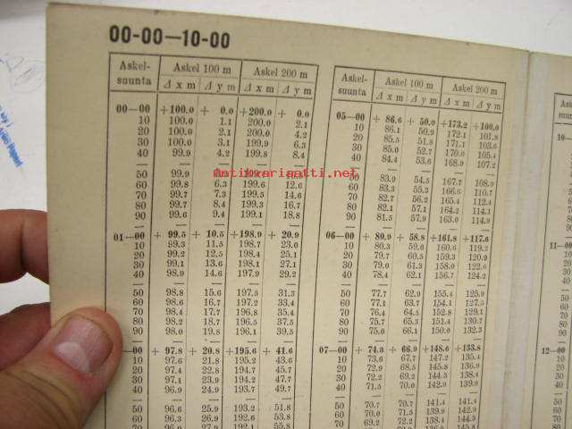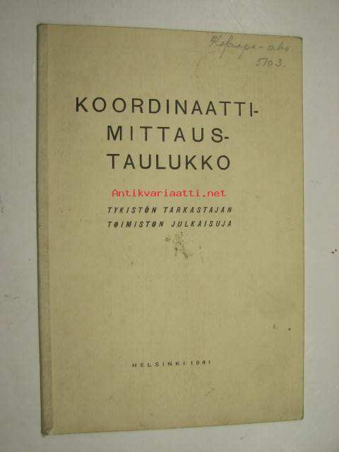 Koordinaattimittaustaulukko - Tykistön tarkastajan toimiston julkaisuja 1941