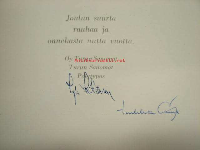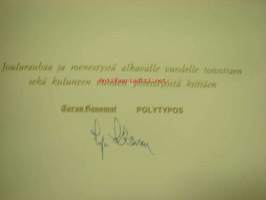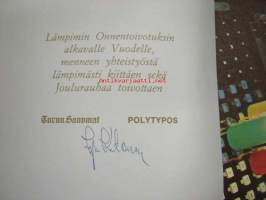TS-Yhtymä, Polytypos Oy -joulukortteja 5 kpl, painettu allekirjoitus Irja Ketonen