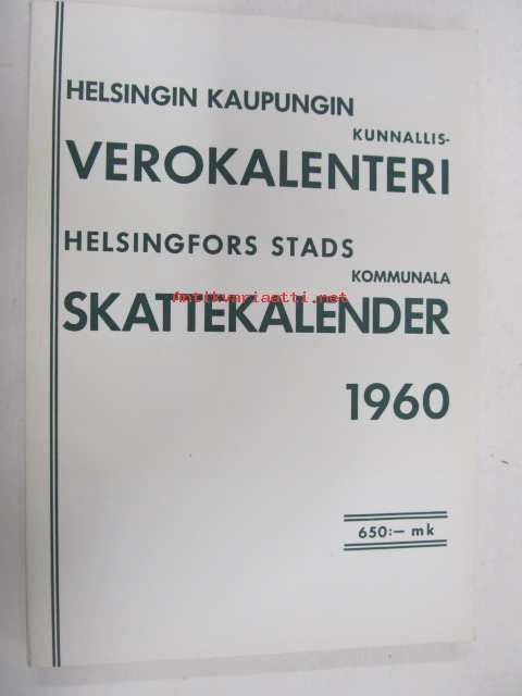 Helsingin kaupungin kunnallisverokalenteri 1960 vuoden 1959 tuloista