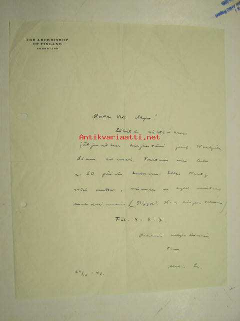 Arkkipiispa Aleksi Lehtonen, yksityiskirje 22.10.1946