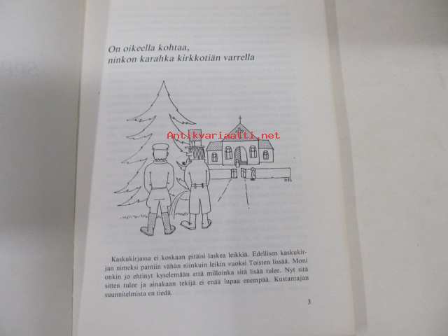 | Saatavilla | 1 kpl | | Julkaisuvuosi | 1985 | | Sivuja | 112 | | Painos | 1 | | Kunto | K3 | | Sidonta/painoasu | Nidottu (pehmeäk.) | | ISBN | 951-9352-15-5 | | Kielet | Suomi |