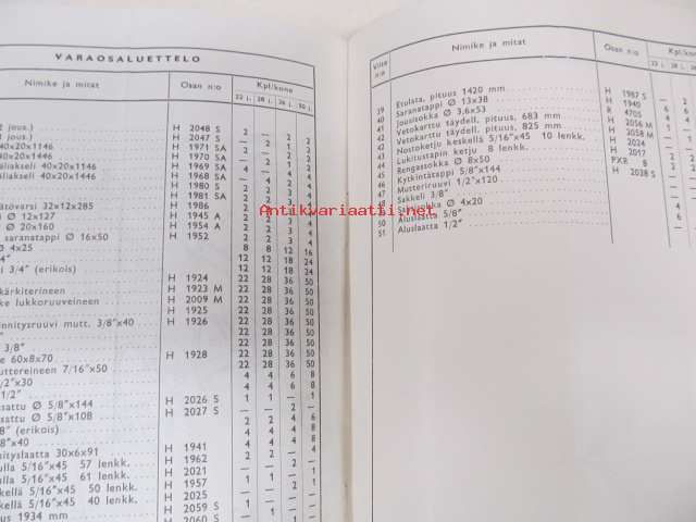 Wärtsilä Jousto-Hankmot 22, 28, 36 ja 50 käyttöohje ja varaosaluettelo