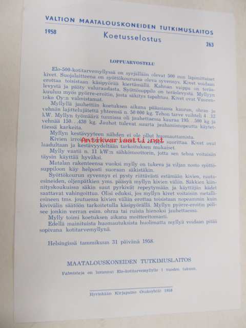| Saatavilla | 1 kpl | | Julkaisuvuosi | 1958 | | Sivuja | 2 | | Kunto | K4 | | Kielet | Suomi |
