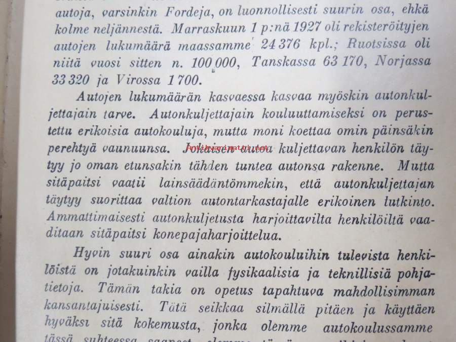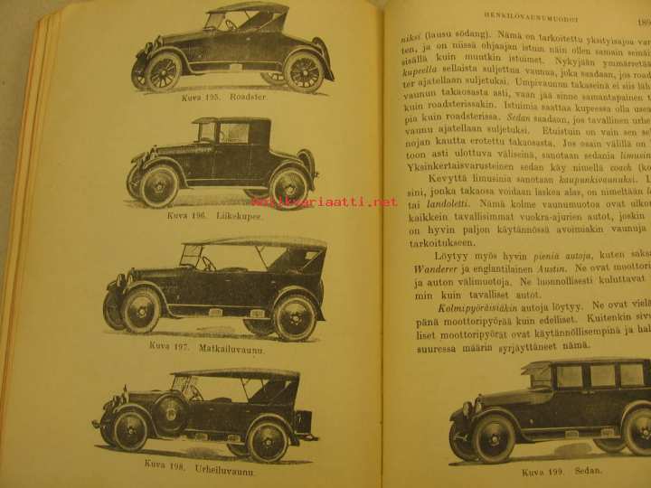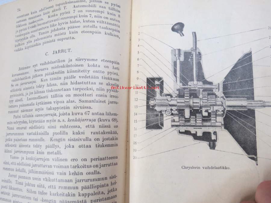 Talvitie Yrjö, WSOY, 19284. painoksen perusteellinen oppikirja autosta, sen rakenteesta ja toiminnasta.