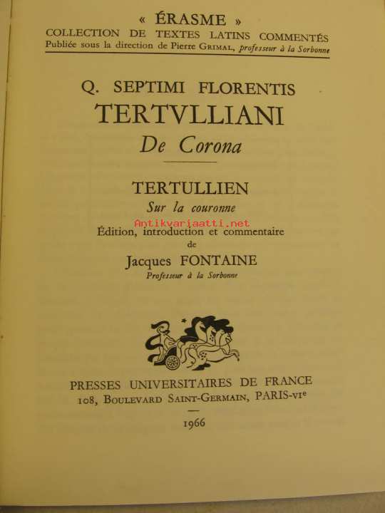 Tertullien, Presses Universitaires de France, 1966èdition, introduction et commentaire de Jacques Fontaine