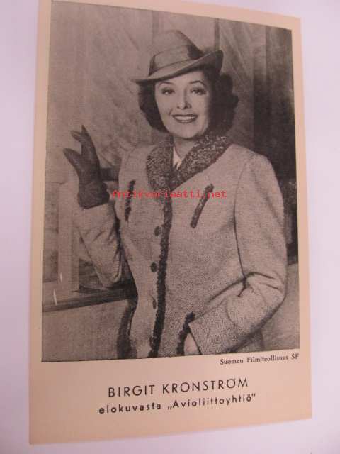 Birgit Kronström -elokuvapostikortti, Suomen Filmiteollisuus SF elokuvasta "Avioliittoyhtiö", Sotainvaliidit ry Filmitähti II -sarjaa