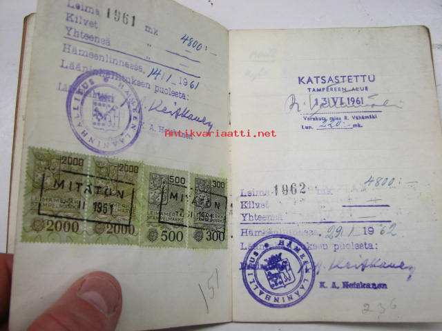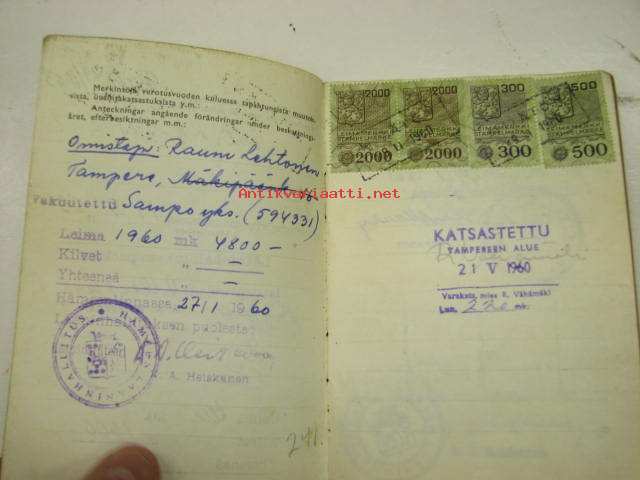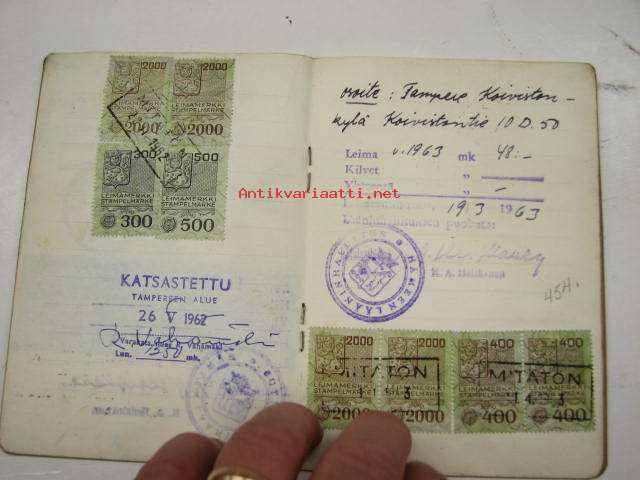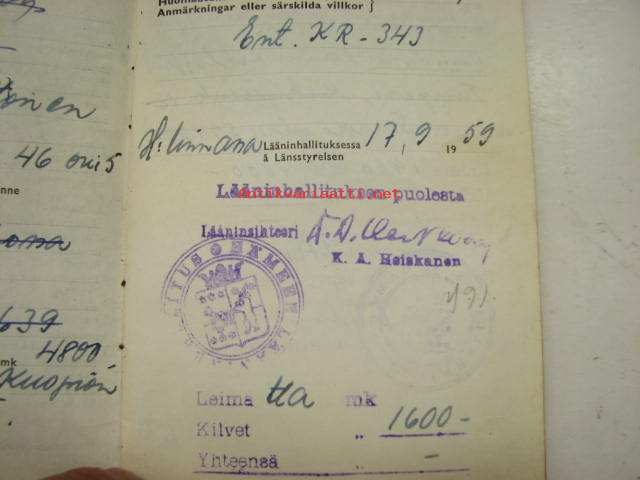 | Saatavilla | 1 kpl | | Julkaisuvuosi | 1959 | | Kunto | K2 | | Sidonta/painoasu | Nidottu (pehmeäk.) | | Kielet | Suomi, Ruotsi |
