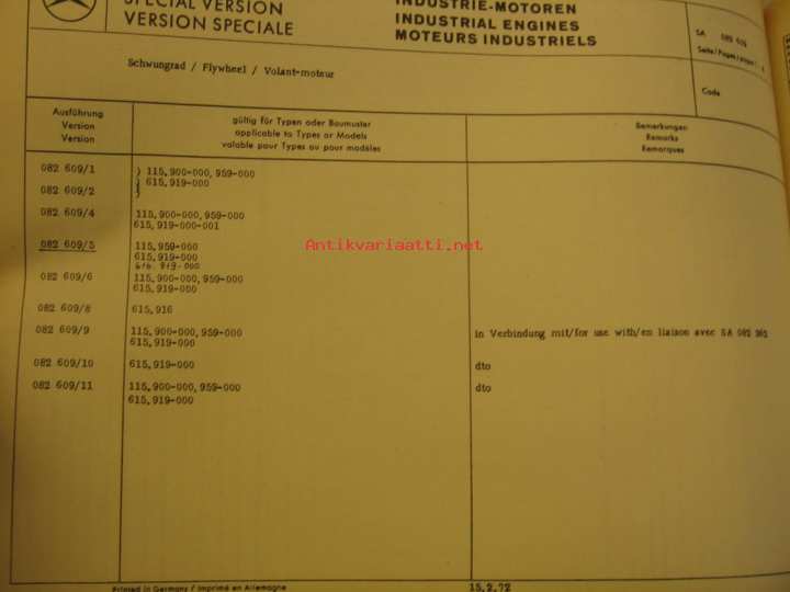 Mercedes-Benz Type OM 616 / Baumuster 616-919 Claas MD Compact 30 varaosaluettelo