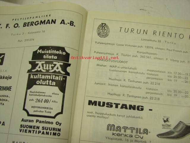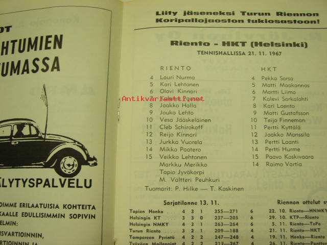 Turun Riento koripallo mestaruussarja 1967 -käsiohjelma
