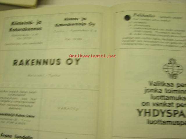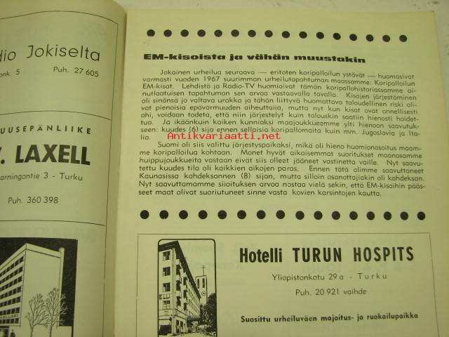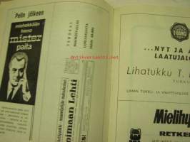 | Saatavilla | 1 kpl | | Julkaisuvuosi | 1967 | | Sivuja | 28 | | Kunto | K2 | | Sidonta/painoasu | Pienpainate | | Kielet | Suomi |