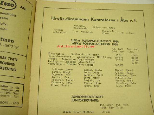 Idrotts-föreningen Kamraterna i Åbo r.f. Suomi-sarja 1968 -käsiohjelma