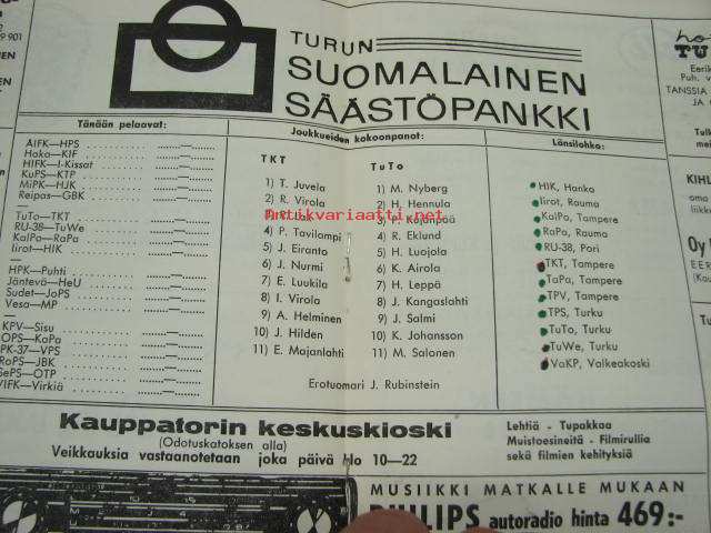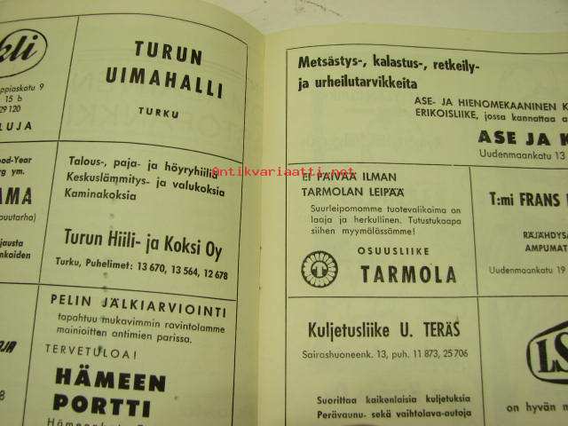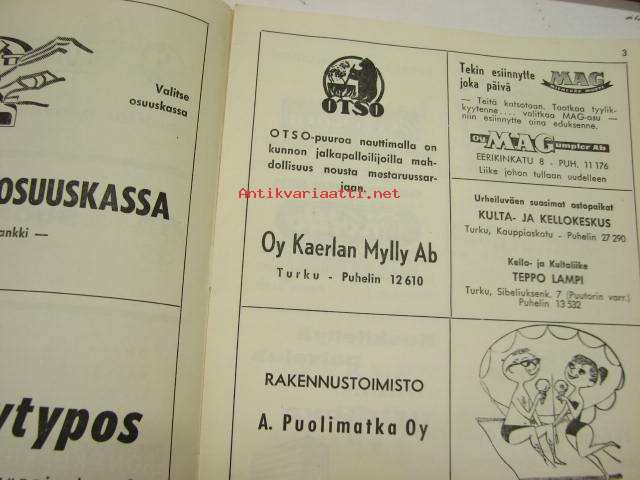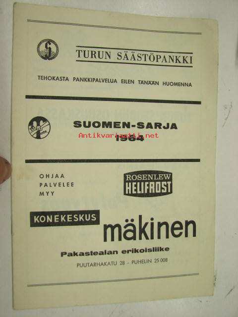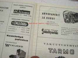 | Saatavilla | 1 kpl | | Julkaisuvuosi | 1964 | | Sivuja | 12 | | Kunto | K2 | | Sidonta/painoasu | Pienpainate | | Kielet | Suomi |