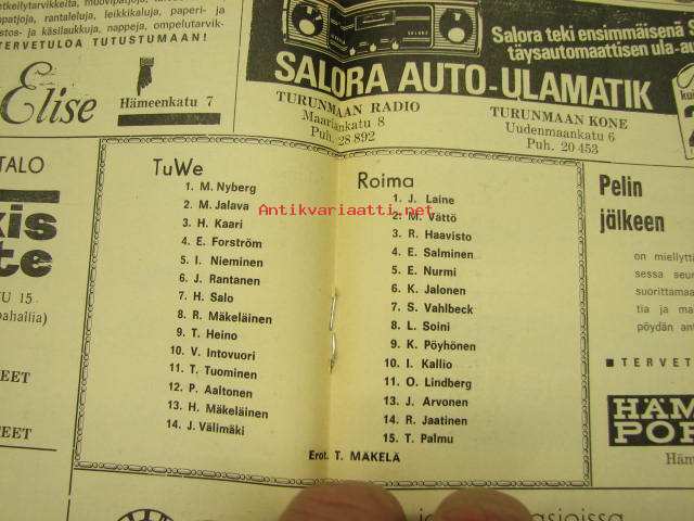 Turun Weikot maakuntasarja 1968 -käsiohjelma