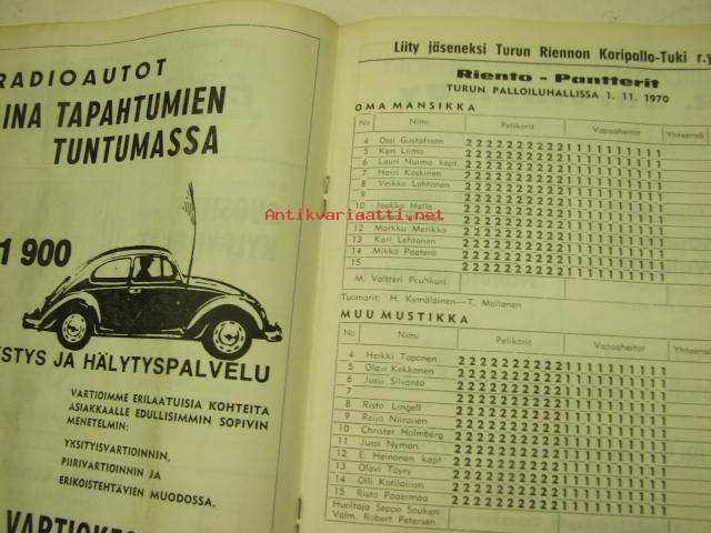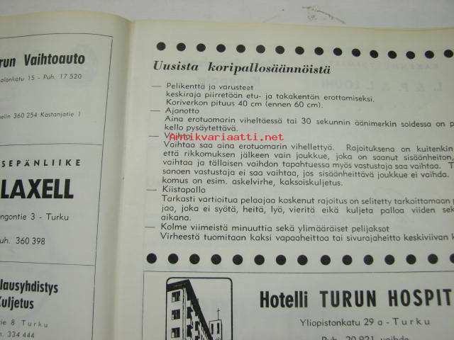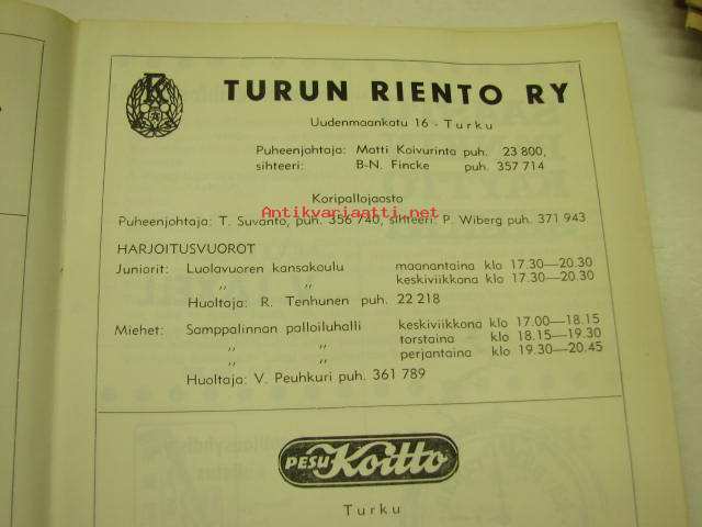 Turun Riento koripallo mestaruussarja 1970 -käsiohjelma
