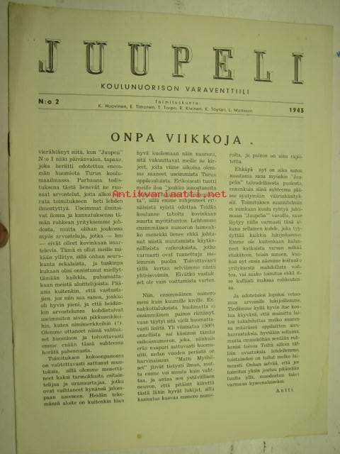 Juupeli - koulunuorison varaventtiili 1943 nr 2 (Salo?)