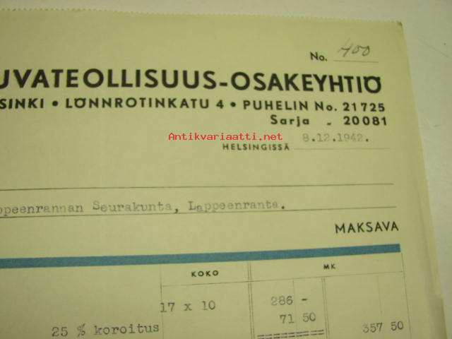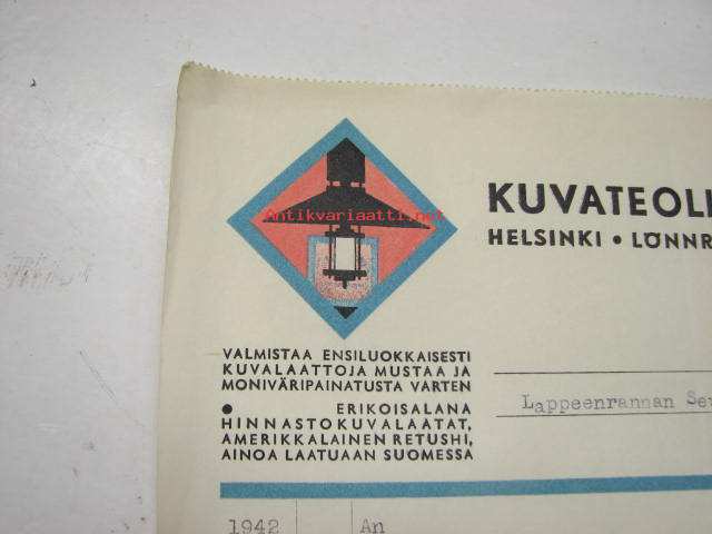 Kuvateollisuus Oy, Helsinki, 8.12.1942 -asiakirja