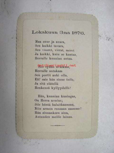 Lokakuun 3:na 1876 -uskonnollinen värssykortti