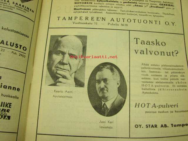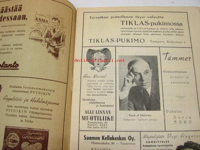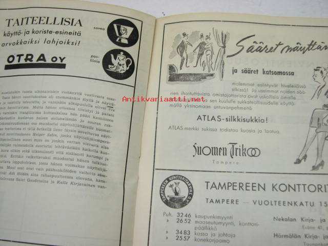 | Saatavilla | 1 kpl | | Julkaisuvuosi | 1942 | | Kunto | K3 | | Sidonta/painoasu | Pienpainate | | Kielet | Suomi |