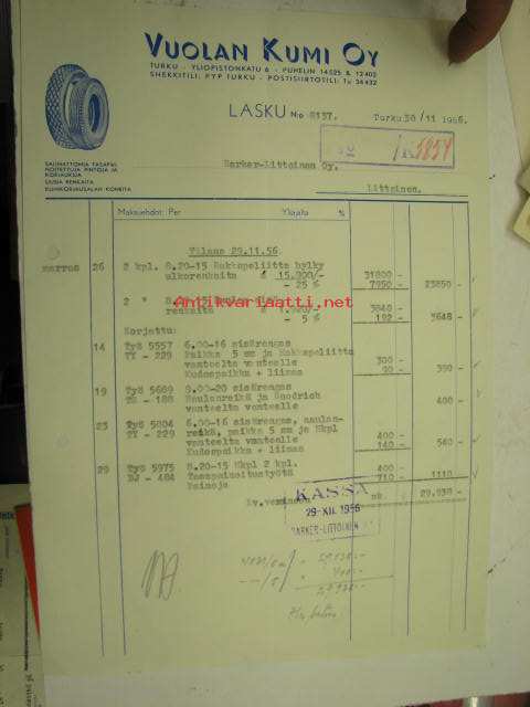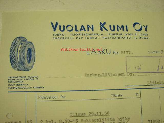 Vuolan Kumi Oy, Turku, 30.11.1956 -asiakirja
