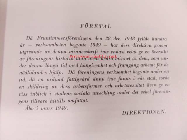 Ett sekel i barmhärtighetens tjänst. Fruntimmersföreningen i Åbo 1849-1949