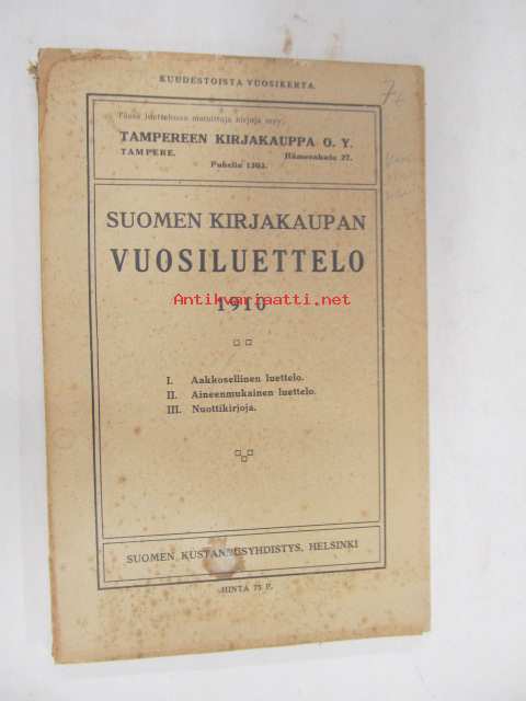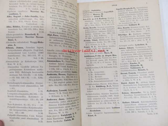 Suomen kirjakaupan vuosiluettelo 1910 - Årskatalog för finska bokhandeln 1910