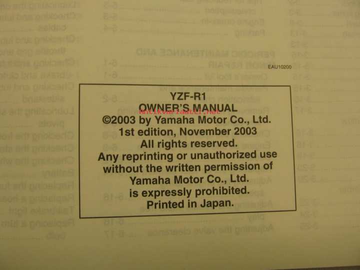 Yamaha YZF-R1vm. 2004 owner´s manual käyttöohjekirja