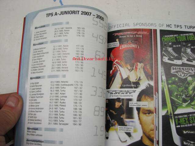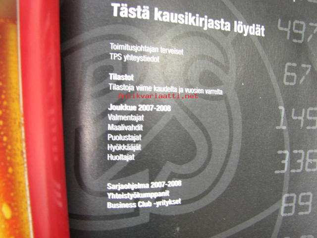 Turun palloseura TPS 2007-2008 jääkiekko kausikirja