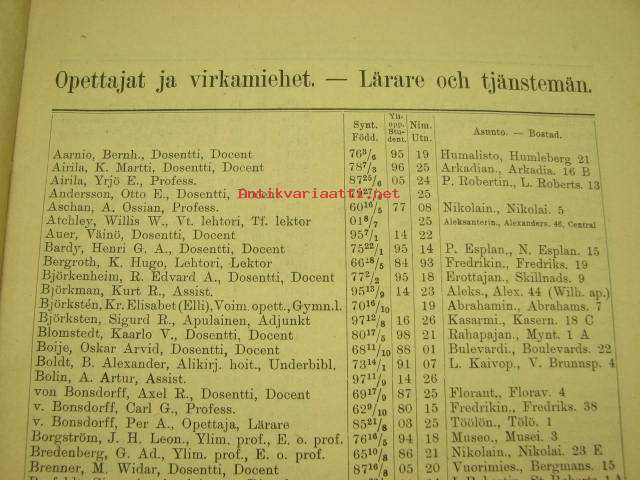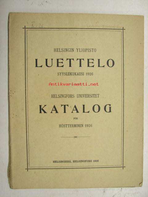 Helsingin Yliopiston luettelo syyslukukausi 1926 - Helsingfors universitetet katalog för höstterminen (sisältää matrikkelin opettajista ja virkamiehistä,