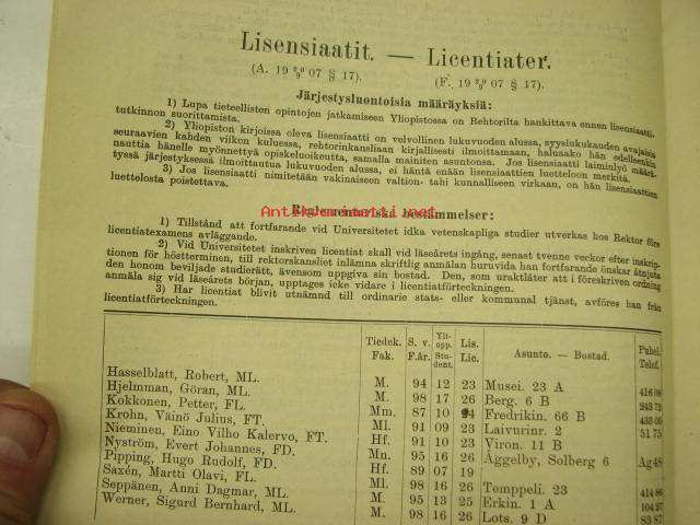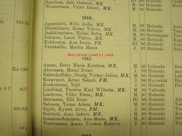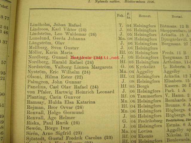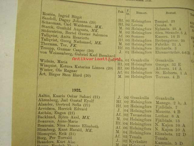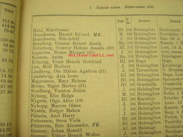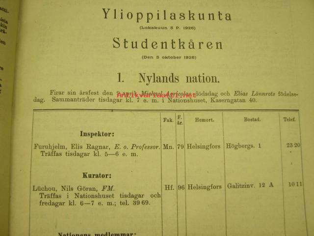 Helsingin Yliopiston luettelo syyslukukausi 1926 - Helsingfors universitetet katalog för höstterminen (sisältää matrikkelin opettajista ja virkamiehistä, opiskelijoista)