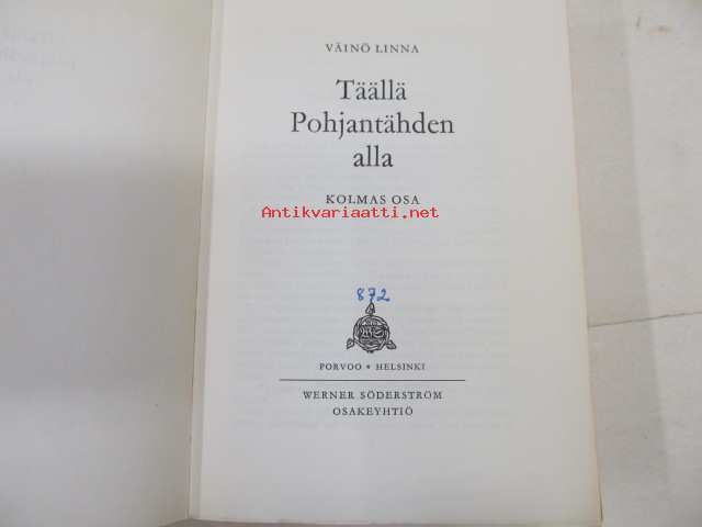 | Saatavilla | 1 kpl | | Julkaisuvuosi | 1962 | | Sivuja | 543 | | Painos | 1. | | Kunto | K3 | | Sidonta/painoasu | Nidottu (pehmeäk.) | | Kielet | Suomi |