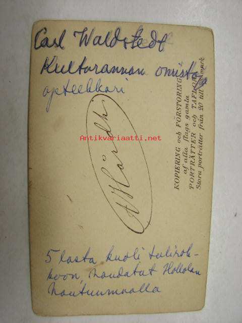 Carl Wahlstedt, apteekkari, omisti aikoinaan nykyisen Kultarannan -valokuva