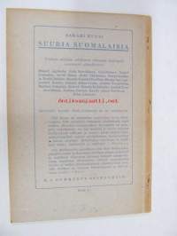 | Saatavilla | 1 kpl | | Julkaisuvuosi | 1930 | | Sivuja | 76 | | Painos | 1. | | Kunto | K3 | | Sidonta/painoasu | Nidottu (pehmeäk.) | | Kielet | Suomi |