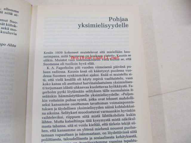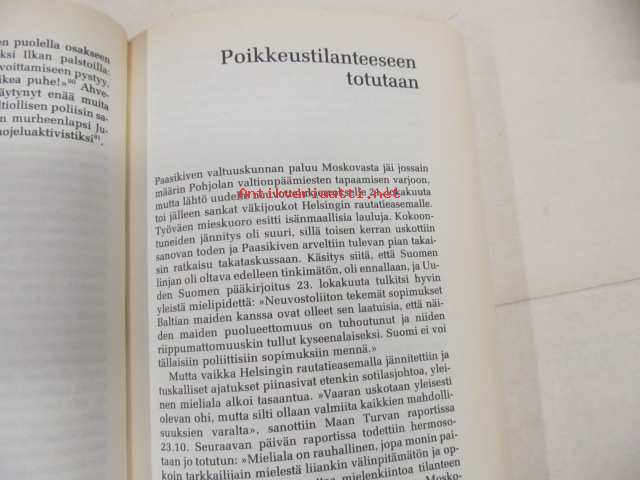 | Saatavilla | 1 kpl | | Julkaisuvuosi | 1989 | | Sivuja | 344 | | Painos | 1 | | Kunto | K3 | | Sidonta/painoasu | Sidottu (kovak.) | | ISBN | 951--0-16084-9 | | Kielet | Suomi |